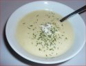 Cook the potatoes in salted water to cover until just tender. Melt the butter in a skillet and cool the leeks gently, tossing them lightly, for a few minutes. Add the chicken bouillon and bring to a boil. Lower the heat and simmer the leeks until tender. Add the potatoes to the leeks and the broth and season to taste with salt, papper and nutmeg. Put this mixture in the blender (you will need to blend it in two lots) and blend for 1 minute, or until smooth. Chill. When ready to serve, mix in sour cream or heavy cream. Garnish with chopped chives.